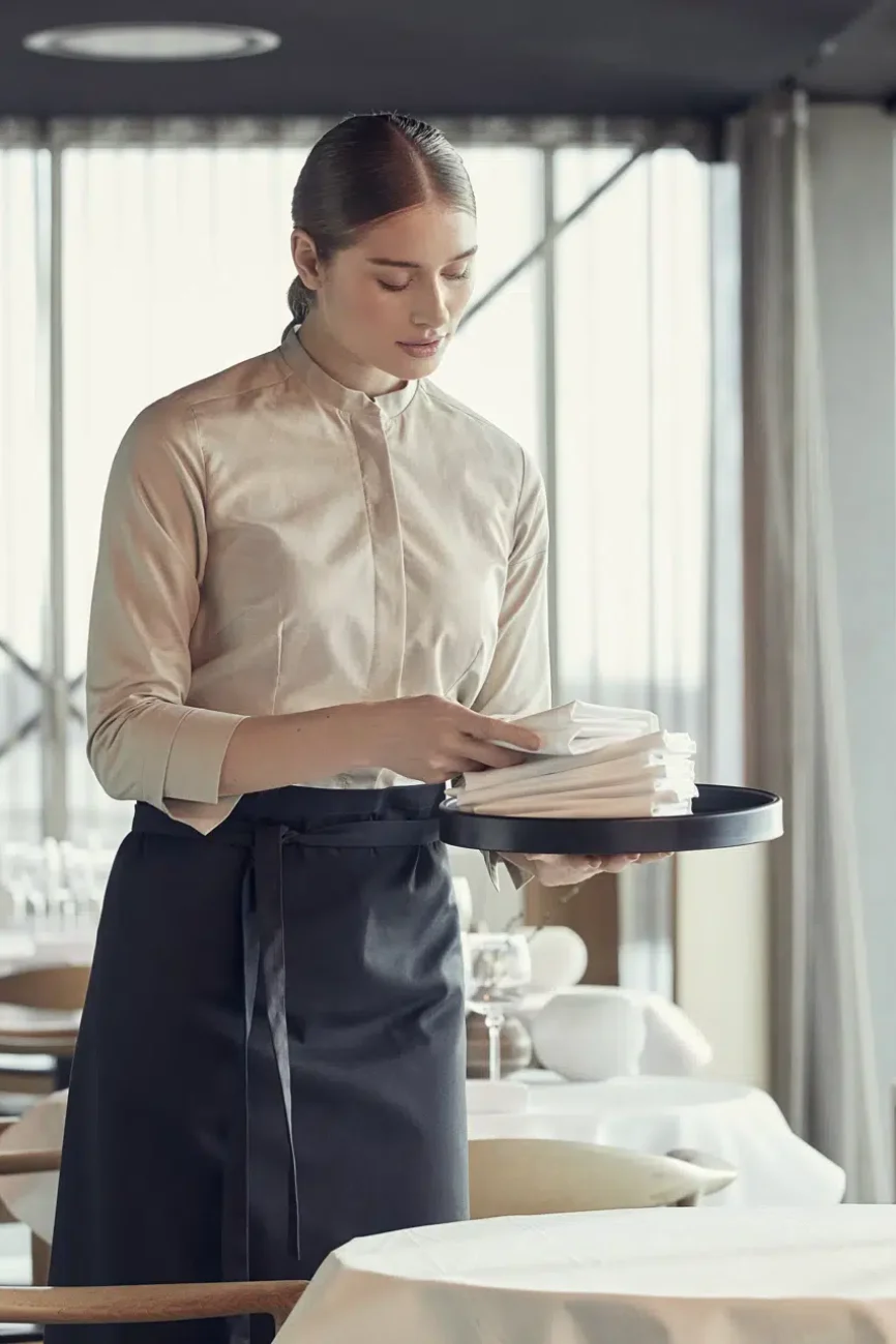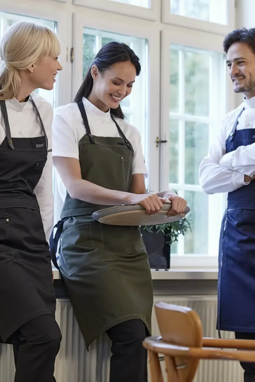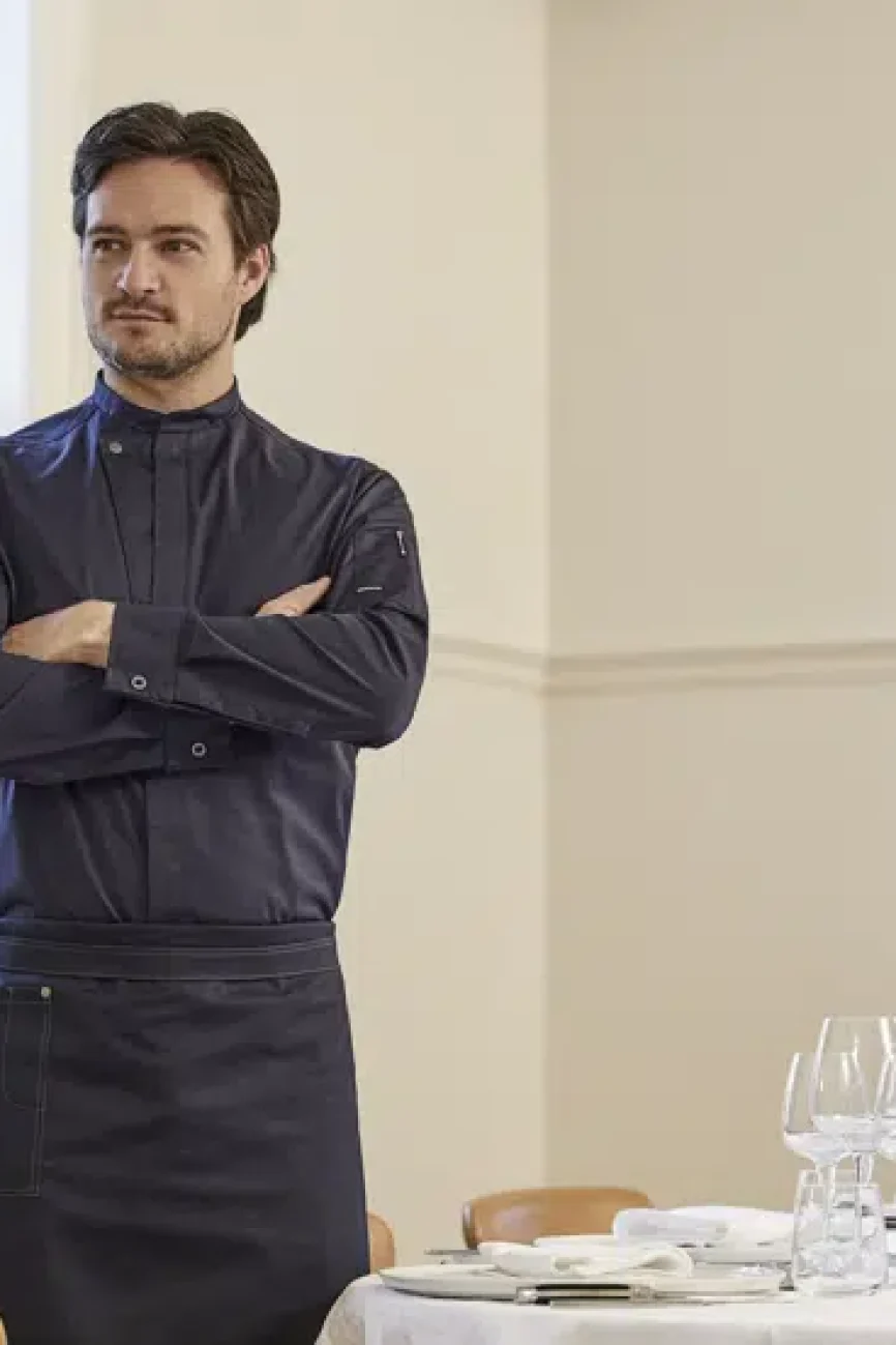 Built with durable fabrics, they are designed to handle kitchen spills and service demands while maintaining a sharp, clean look.