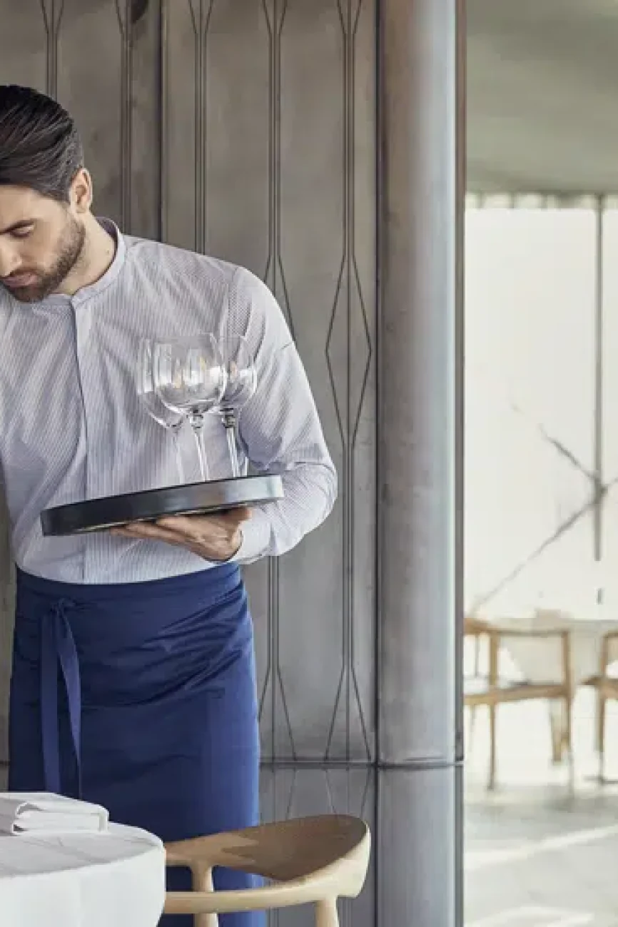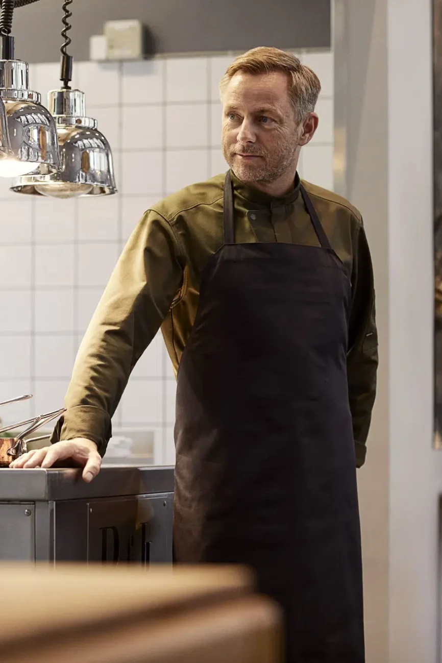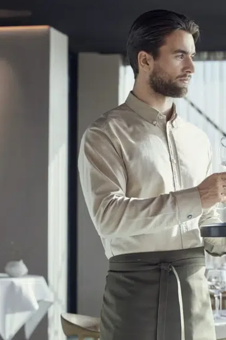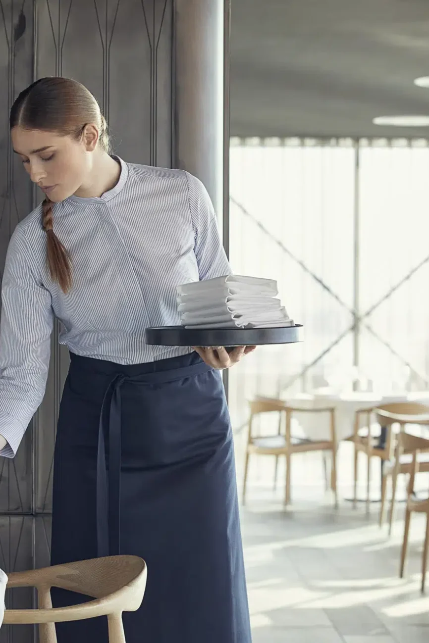 Built with durable fabrics, they are designed to handle kitchen spills and service demands while maintaining a sharp, clean look.