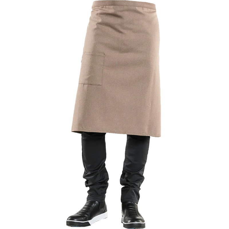 Bistro apron, length over knee, front side pocket with pen compartment. 67%PES 33%CO. W: 90 cm x L: 65 cm.