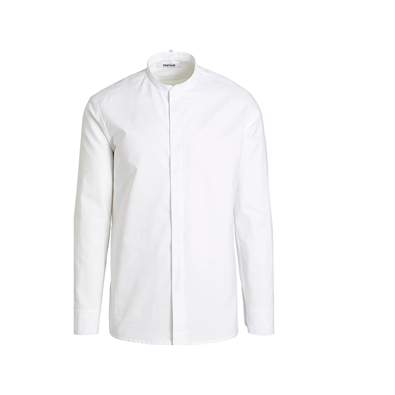 Sleeve cut that prevents the shirt from riding up during movement, added interlining that can be washed and dried according to ISO 15797. 60%CO 40%PES.
