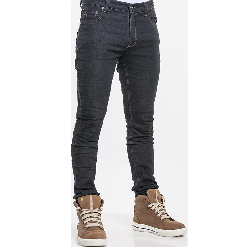 Skinny fit, zipper closure, 5 pocket jeans cut, attached back pockets, elastic fabric. 90,5 CO 8%PES 1,5 EA.