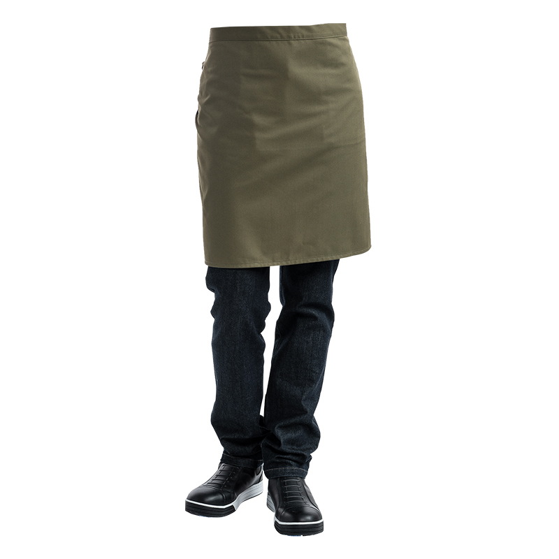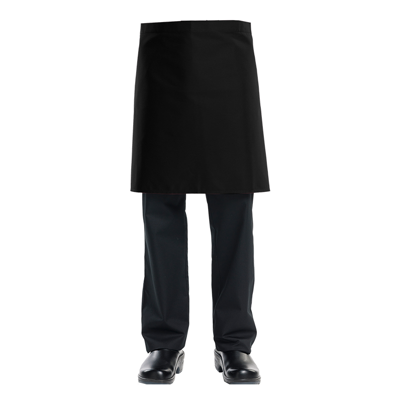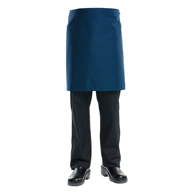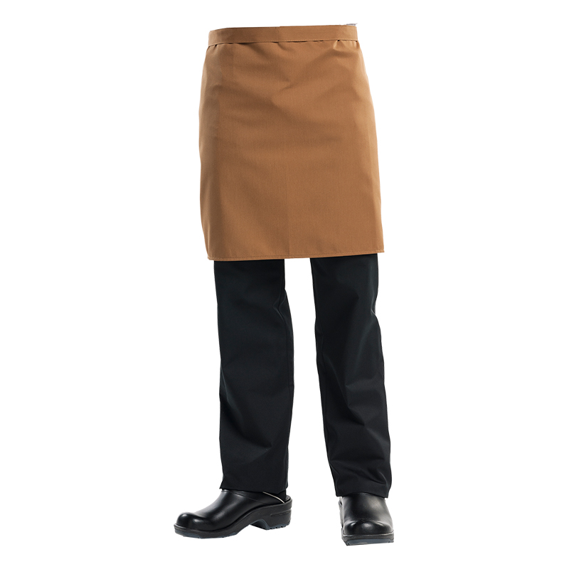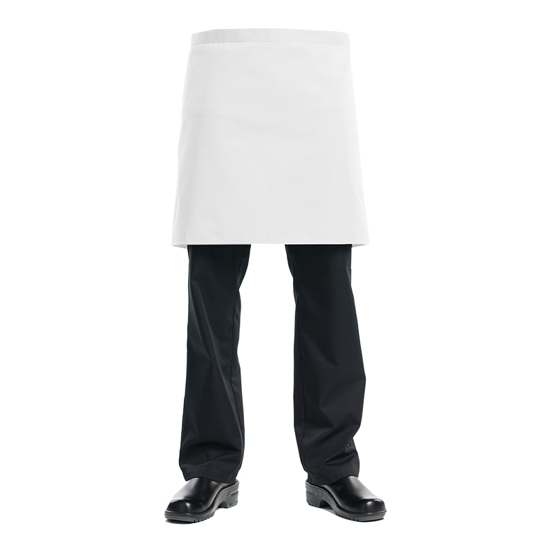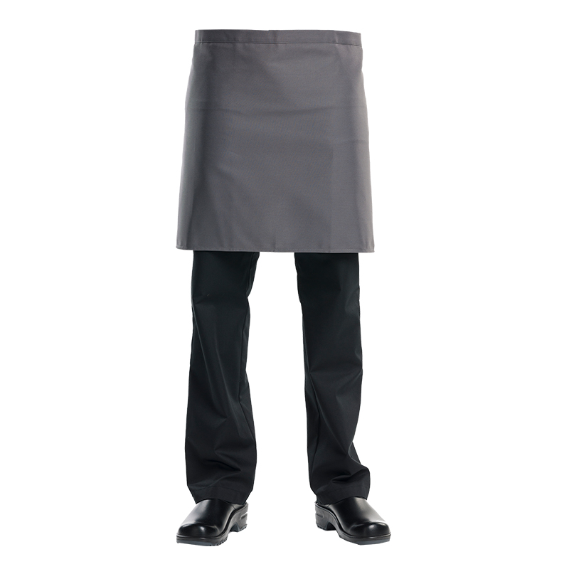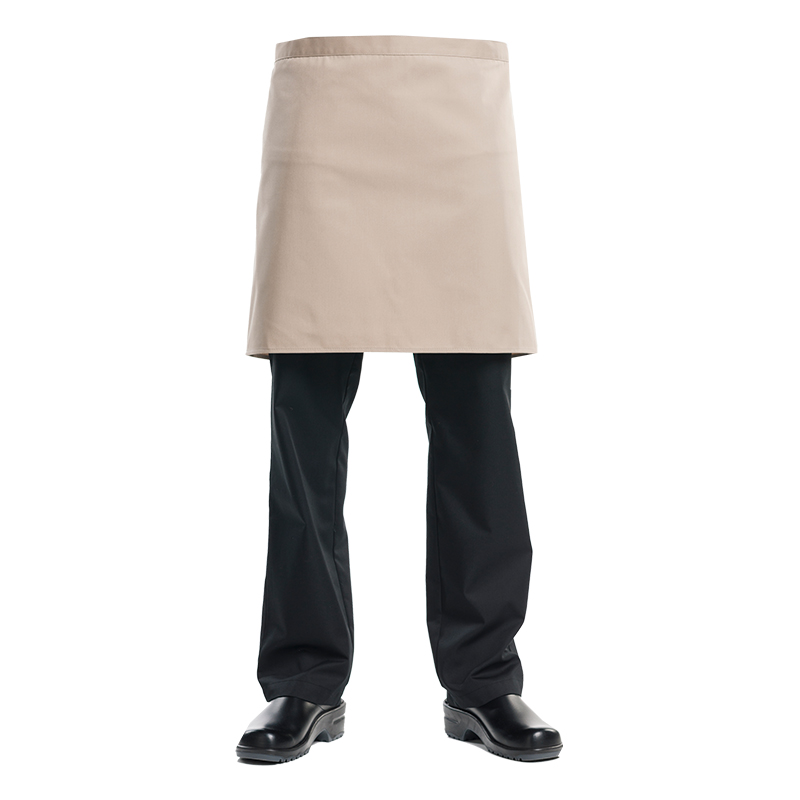 Short apron, no pockets. 67%PES 33%CO. W: 100 cm x L: 50 cm.